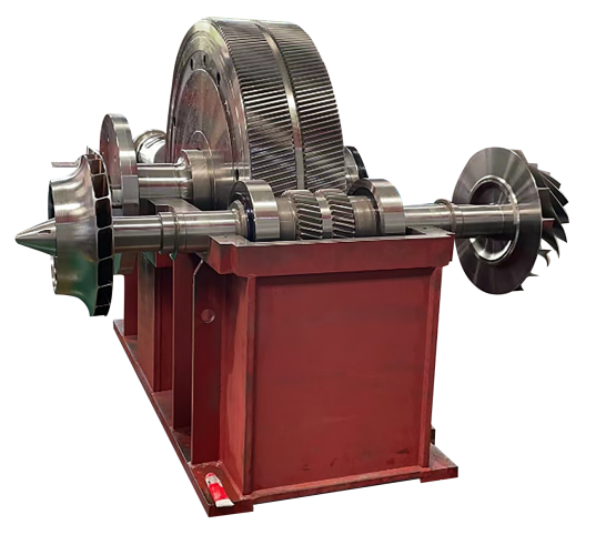 該產品為我司與某高校共同研發項目,齒輪箱轉速100000rpm,試車各項指標均滿足API標準。該產品在超高轉速滾動軸承設計、小尺寸、小模數、高精度齒輪設計、輕型轉子動平衡技術、超高轉速滑動軸承的設計與應用技術、高速分流均載技術等多方面都取得了重大突破。該產品的成功研制標志著我司在高速齒輪箱傳動設計與制造領域邁入了一個新的臺階。