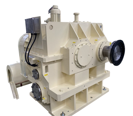 該系列齒輪箱用于橡塑行業單螺桿擠出機,整機采用平行軸水平布置、三級傳動結構,從技術設計、生產制造上滿足了齒輪箱輸出軸高精度和高同軸度的要求,同時通過技術、工藝、生產協同優化降本,在保證齒輪箱性能的情況下,使其在市場競爭中具備較高競爭力,是我司綜合實力的體現。
